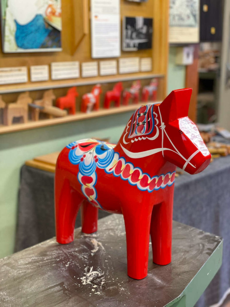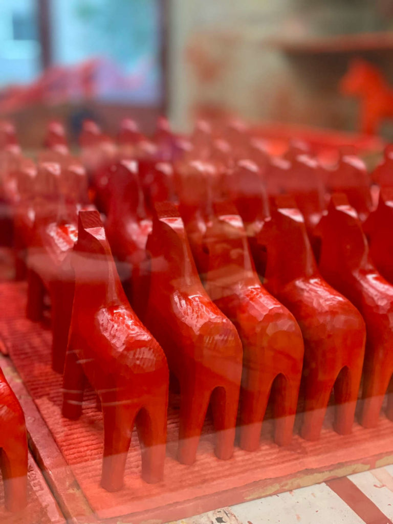 Und am Ende kommen wir natürlich nicht ohne Mitbringsel raus und wir haben uns für das klassische rote Dalarna Pferdchen entschieden. Aber wir hatten die Qual der Wahl – alle sind so hübsch. Wenn ihr in der Nähe seid, es ist absolut einen Besuch wert und ein Pluspunkt Mitte September: Wir waren fast alleine dort und konnten so alles prima in Ruhe anschauen und uns auch Schritte erklären lassen.