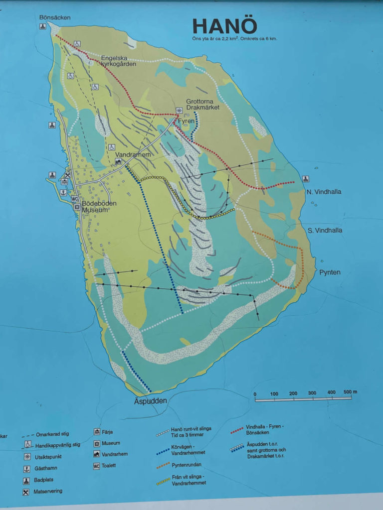 Aus einem früheren Urlaub möchte ich dir auch diesen schönen Stellplatz vorstellen: In Nogersund (1b), an der Marina, gibt es einen größeren Stellplatz direkt am Wasser. Besonders begehrt sind die Plätze in der ersten Reihe – wir haben Glück gehabt. Empfehlenswert ist ein Tagesausflug zur Insel Hanö: Am Hafen oder Ticketbüro neben dem Stellplatz erfährst du die Überfahrtszeiten. Plane genug Zeit ein – der Rundwanderweg um die Insel ist richtig schön und abwechslungsreich. Am Ende lohnt es sich im Hafenrestaurant auf der Insel einzukehren. Unsere Tour findest du HIER auf Komoot.