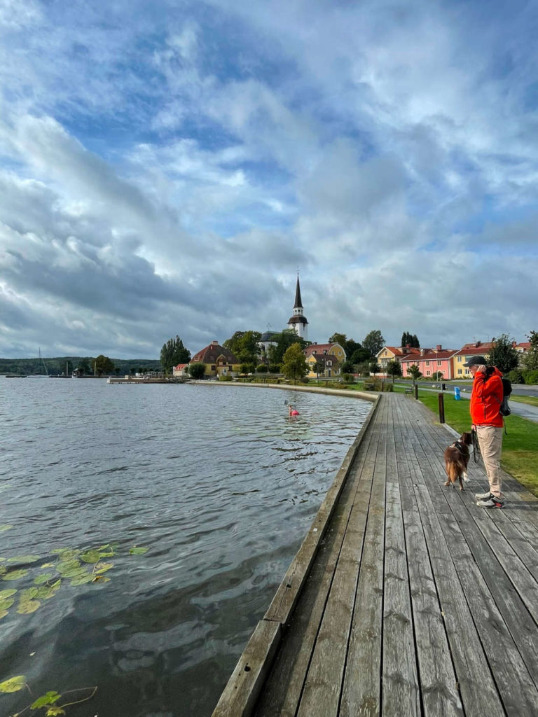 Am nächsten Morgen laufen wir rund 2,5 km ins Zentrum. Wir besichtigen Schloss Gripsholm, machen eine schöne Fika im Ort, und finden schließlich auch das Grab von Kurt Tucholsky – es hat etwas gedauert, aber wir haben es doch entdeckt. Im Ort gibt es hübsche Häuser und Cafés, und da Nachsaison ist, ist es sehr ruhig.